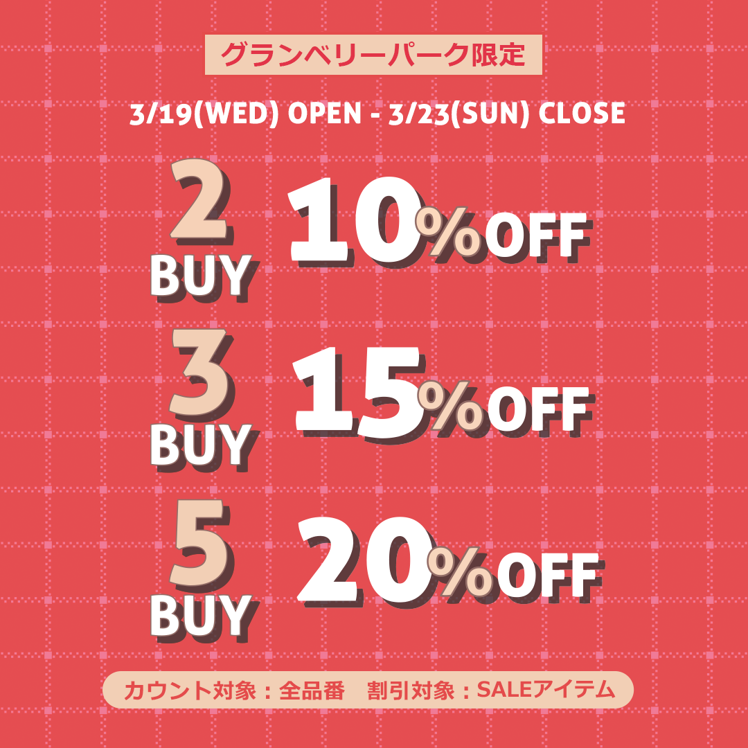 2025年03月19日(水)OPEN~2025年03月23日(日)CLOSEまでの間、moimoln南町田グランベリーパーク店で【まとめ買い応援】イベントを開催♪