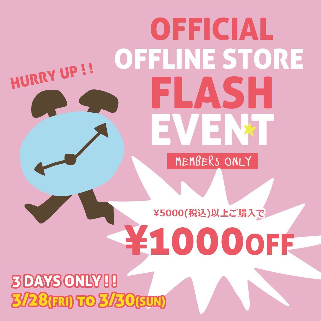 03/28(金)OPEN ~ 3/30(日)CLOSEの期間中、商品合計5,000円以上のお買い上げで合計金額から1,000円OFF!