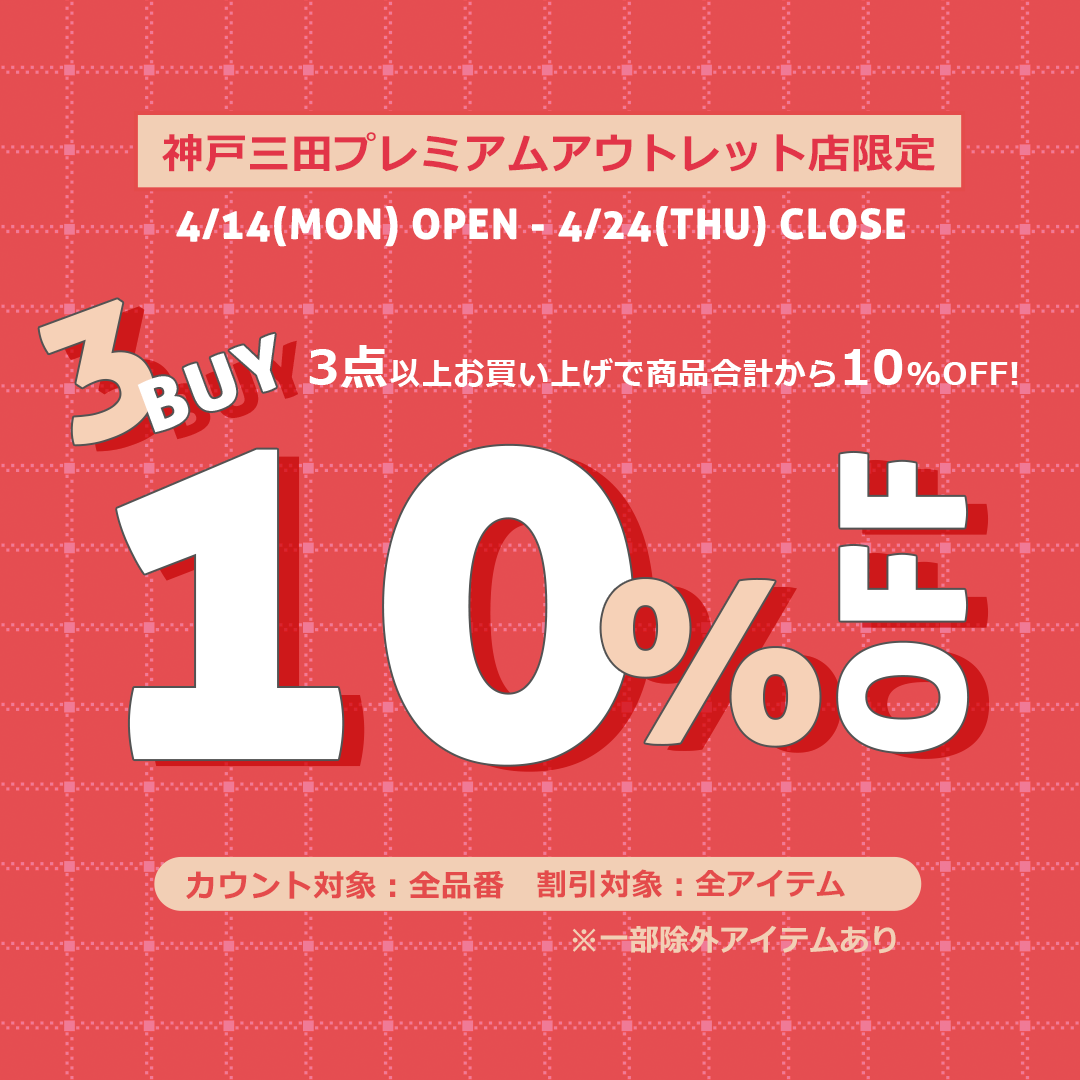 2025年04月14日(月)OPEN~2025年04月24日(木)CLOSEまでの間、moimoln神戸三田プレミアムアウトレット店で【まとめ買い応援】イベントを開催♪