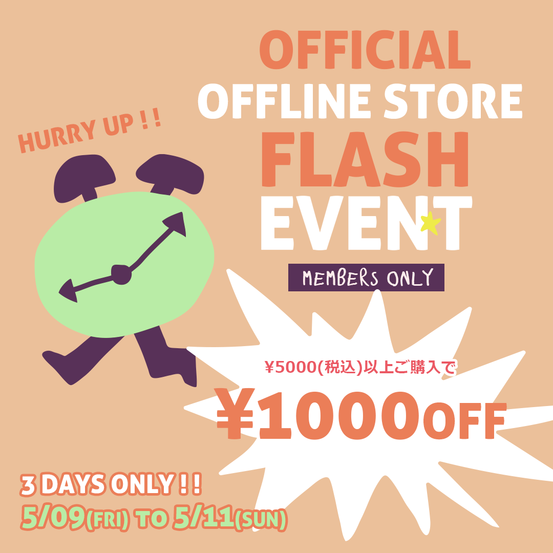 05/09(金)OPEN ~ 05/11(日)CLOSEの期間中、商品合計5,000円以上のお買い上げで合計金額から1,000円OFF!