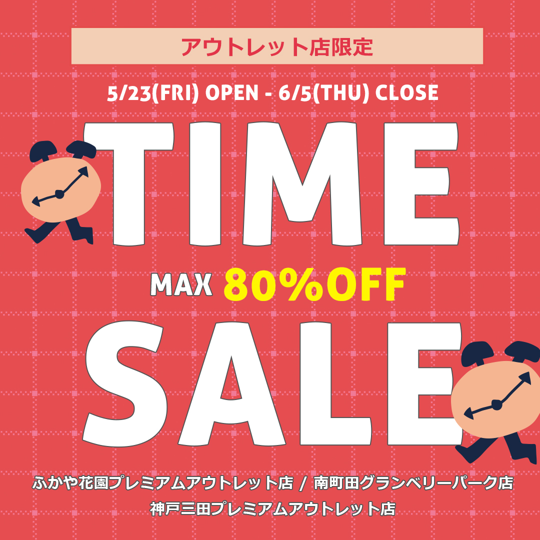 2025年5月23日(金)OPEN~2025年6月05日(木)CLOSEまで!アウトレット店舗限定でTIME SALEを開催♪