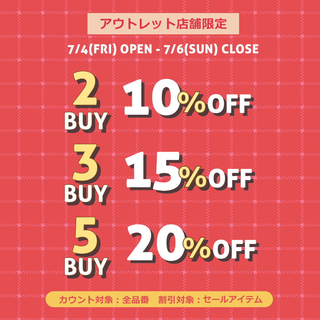 2025年07月04日(金)OPEN~2025年07月06日(日)CLOSEまでの間、moimoln南町田グランベリーパーク店とふかや花園プレミアム・アウトレット店で【まとめ買い応援】イベントを開催♪