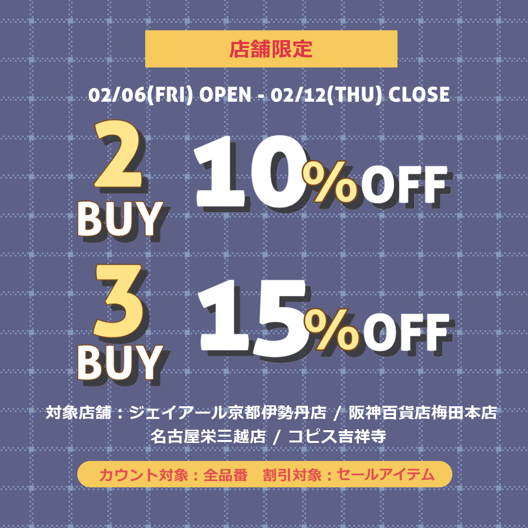 ※新作はカウント数には入りますが、セール商品のみ割引対象になります。