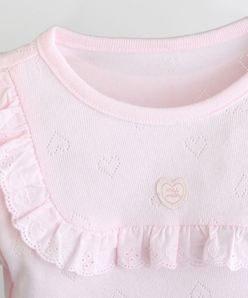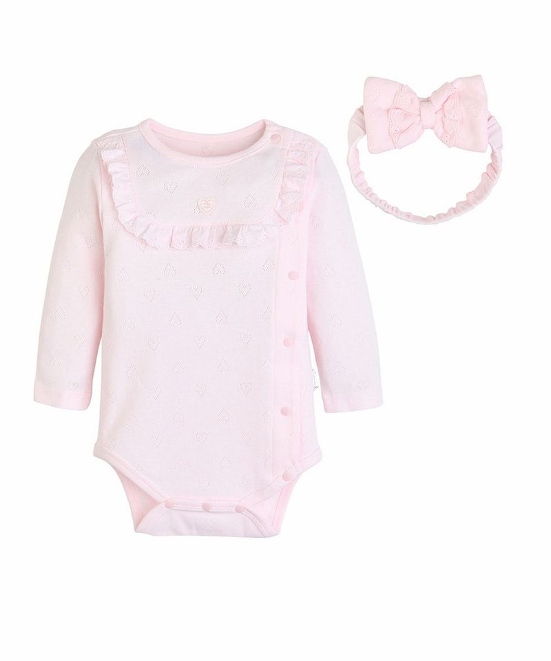【2点セット】【mini moi】ハートアイレットロンパース&リボンヘアバンド