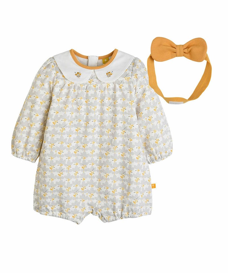 【2点セット】フラワーショート丈カバーオール&キャンディリボンヘアバンド