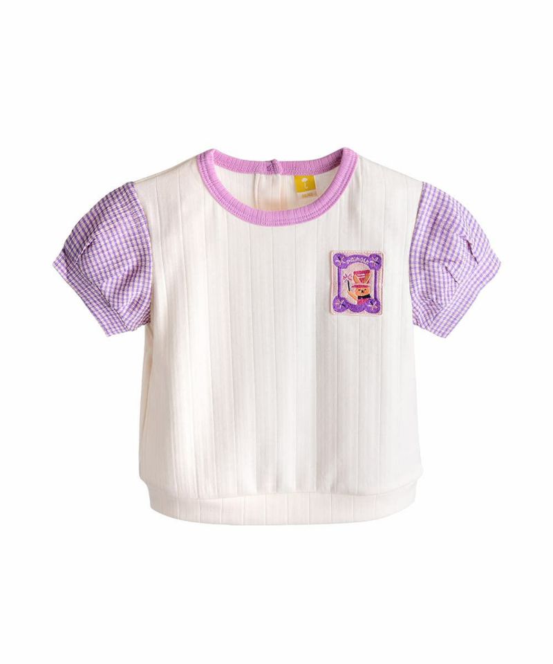 涼しい素材で楽で着こなしやすいセットアップ。袖のチェック柄と胸元のラビットワッペンがポイント♪女の子が好きなパープルカラーのアイテムで、(W232STB23P)とは兄妹コーデが楽しめます。