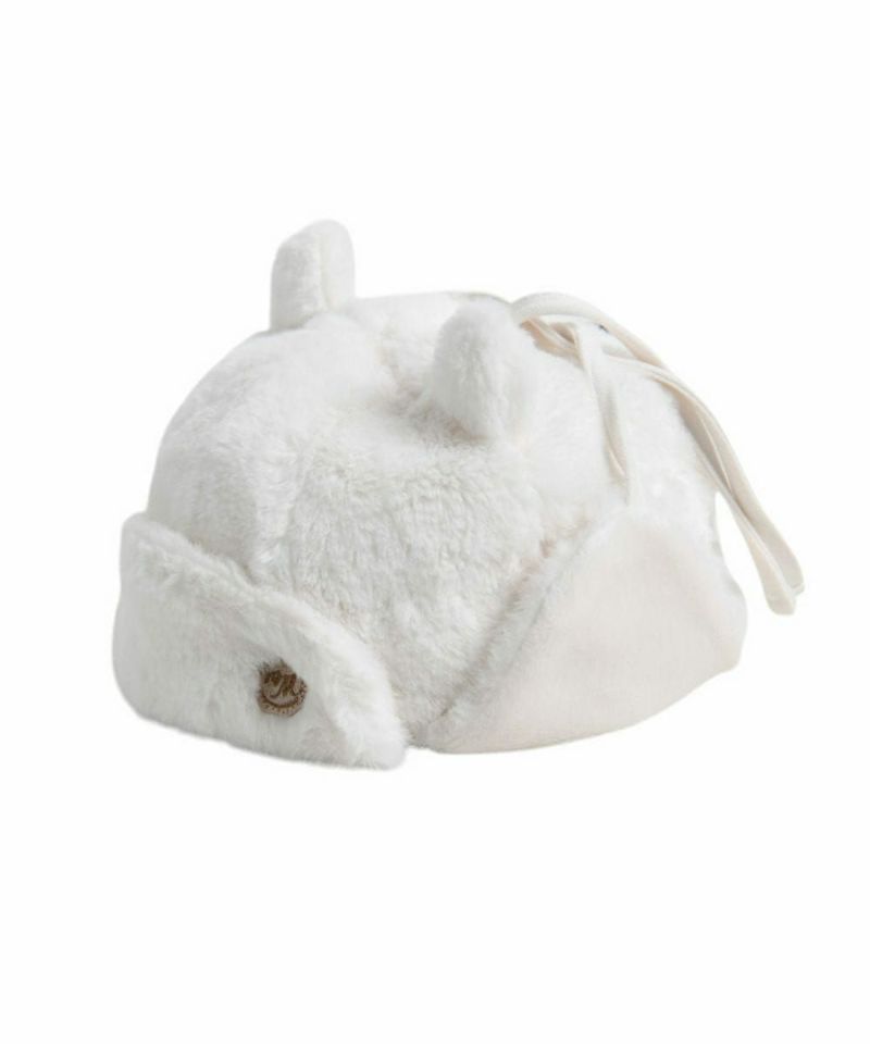 ファー素材の耳付き帽子。かわいい猫の飾り耳がポイントのアイテムです。