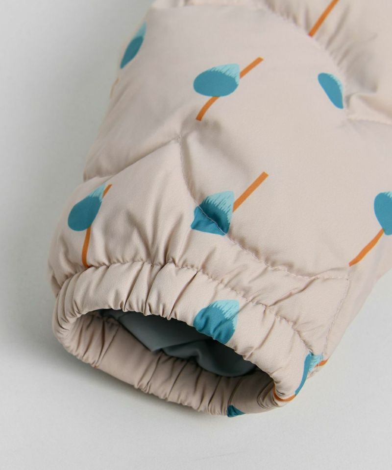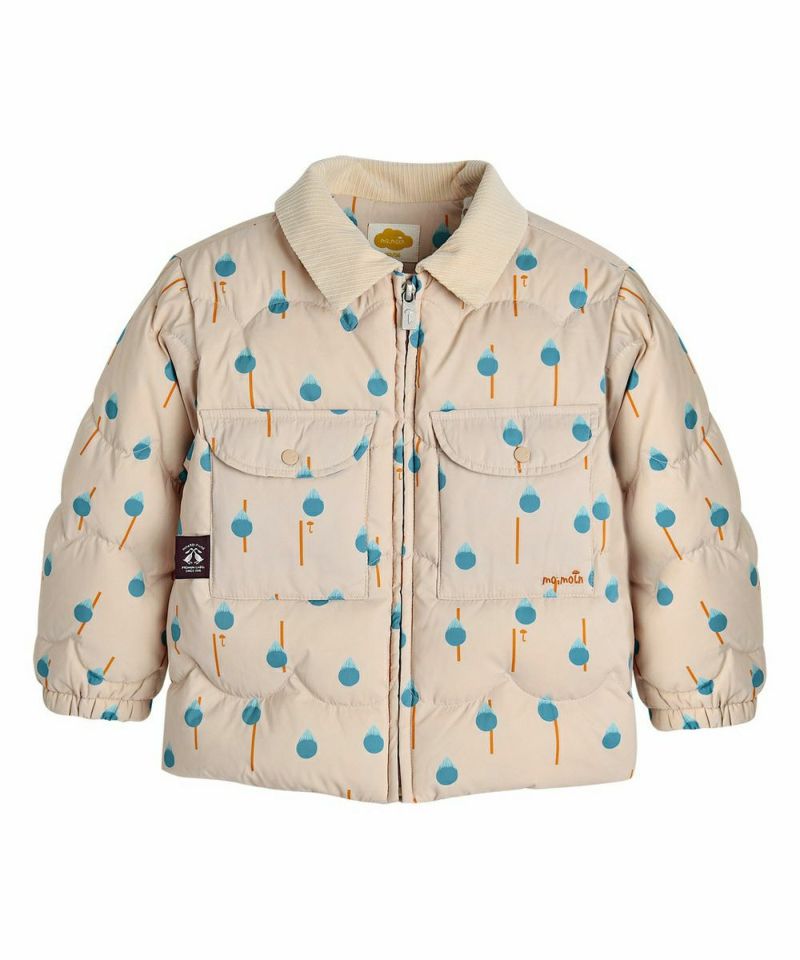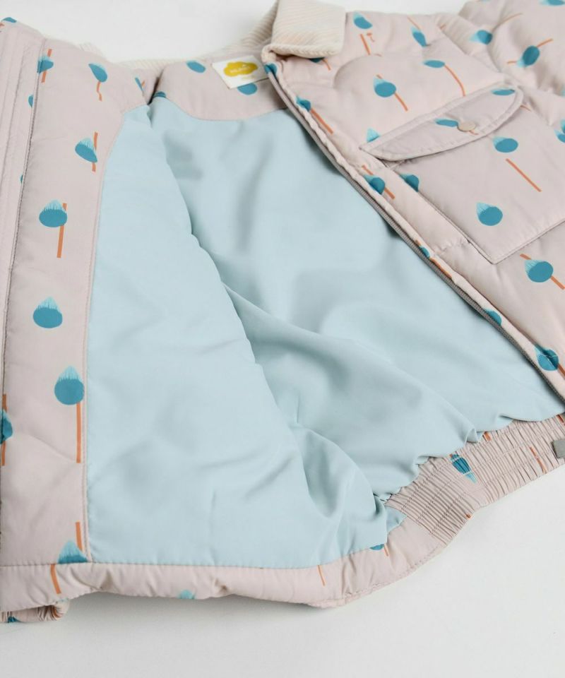 ミナルディダックダウンを使用した軽量ダウンジャンパー 。しずく柄とユニークなキルティングがポイント。後ろの幅の広いバンディングがウエストを整えてくれて可愛らしいシルエットになるアイテムです。
