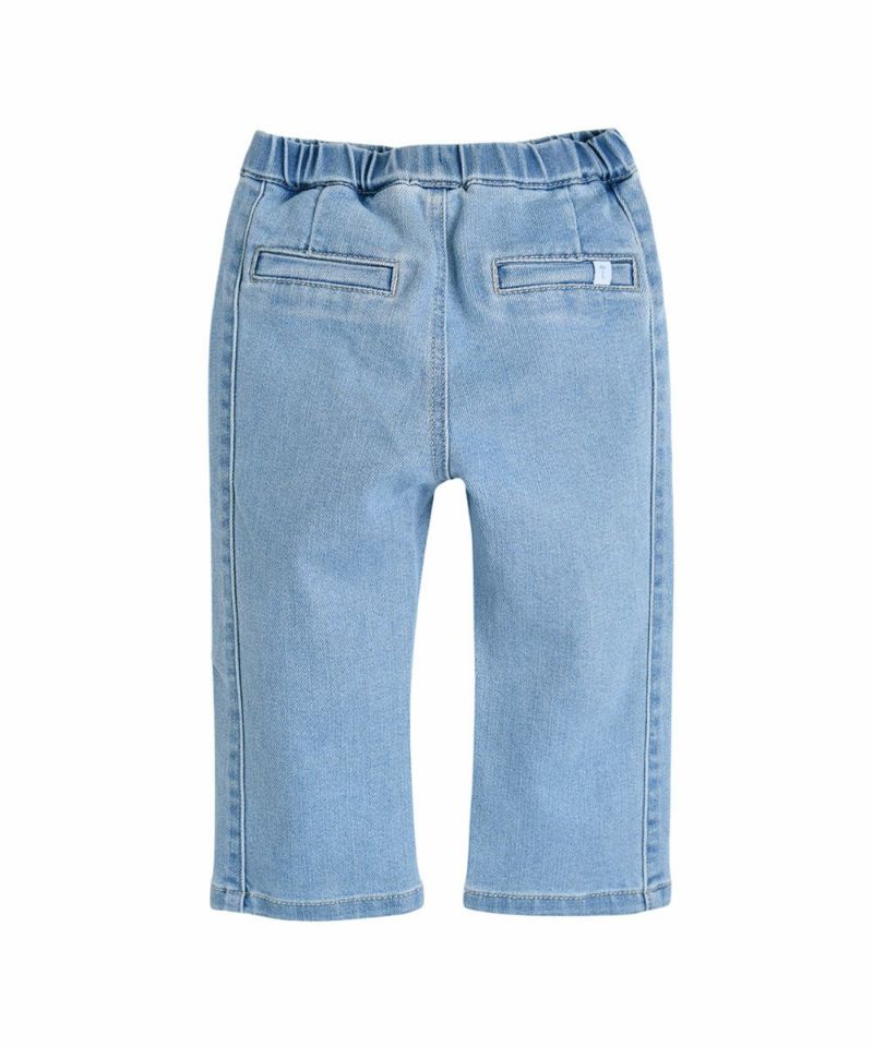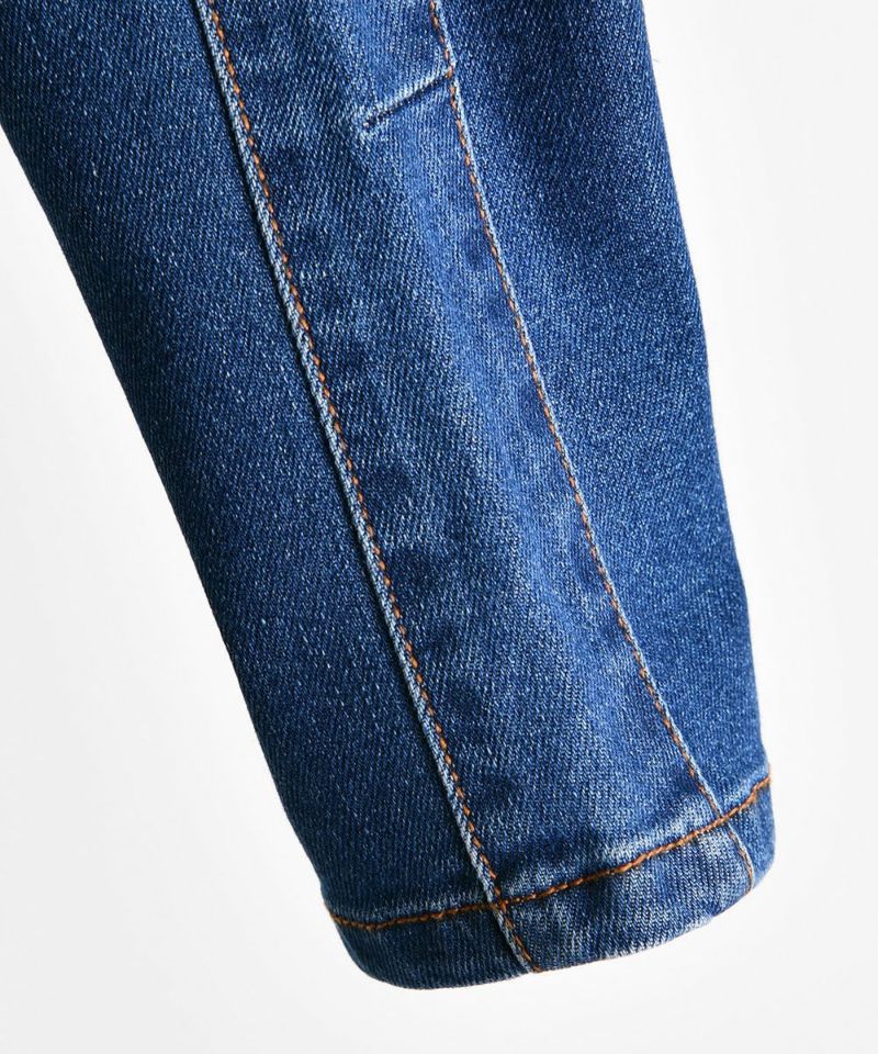 少しワイドな幅ですらりとしたストレートフィットのデニムパンツ。前からでも見えるズボンの横線とこだわった切開がポイントで、ティモ デニムジャケット(M251JKG04P)とのコーディネートがおすすめです。