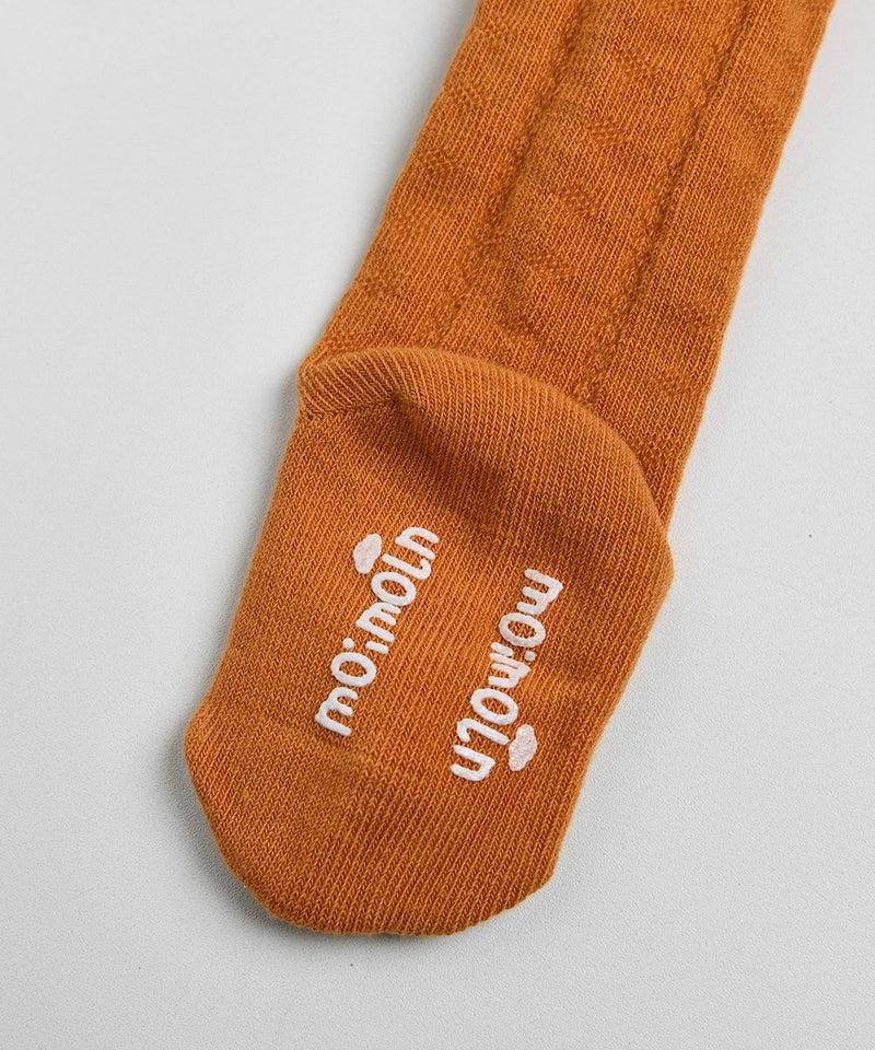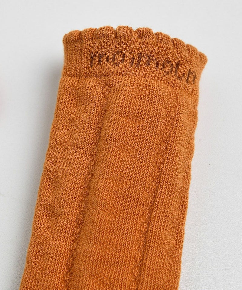高級な編み目と足首部分のスカラップでポイントをつけたロングソックス。秋のコーディネートで大活躍のアイテム。エルロチェックワンピース(M251OPB08P)とのコーディネートがおすすめです。