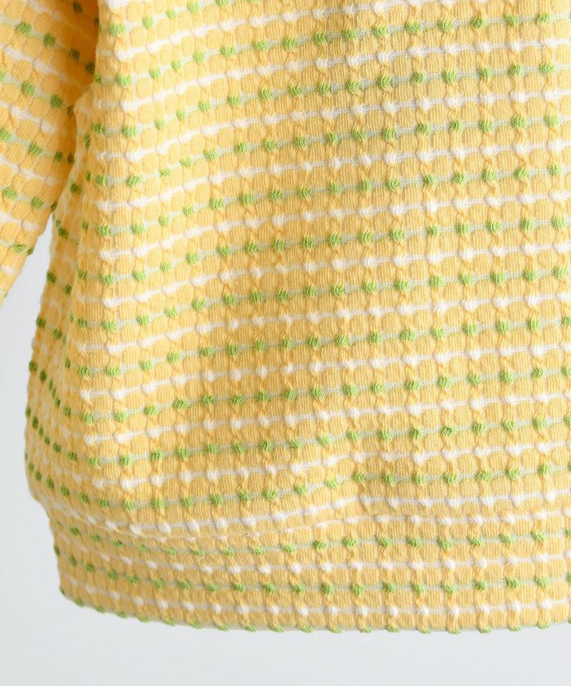 しっかりとした発色のイエローグリーン配色が可愛いジャカードトップス。