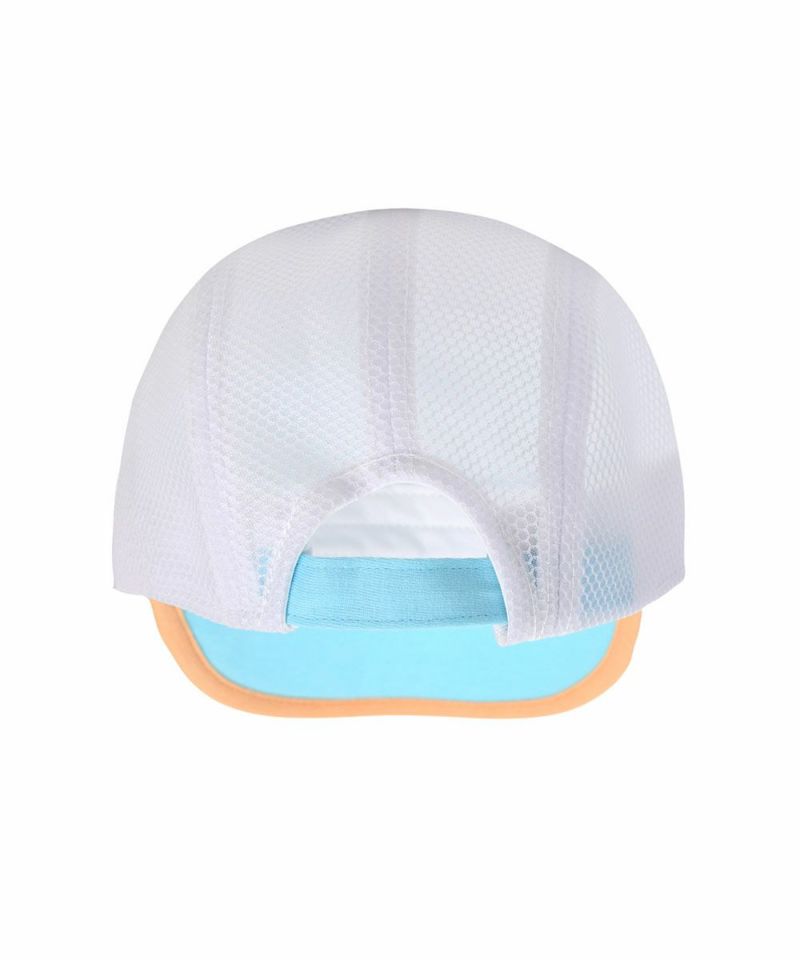 アクアブルーとオレンジカラーのバランスがおしゃれなキャップ。前はクジラワッペンがアクセントに、後はメッシュ混の生地で通気性がよく暑い季節にも適した帽子です。