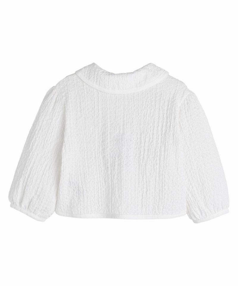 丈夫な縫い方が特徴のカーディガンで隙間から空気が通り、快適な着心地を与える季節の変わり目から初夏の夜まで着られるカーディガン。小さな襟と装飾で可愛さを加え、Aラインフィットでワンピース、デニムパンツとコーデすることでラブリーにもカジュアルにもなる実用的なアイテムです。