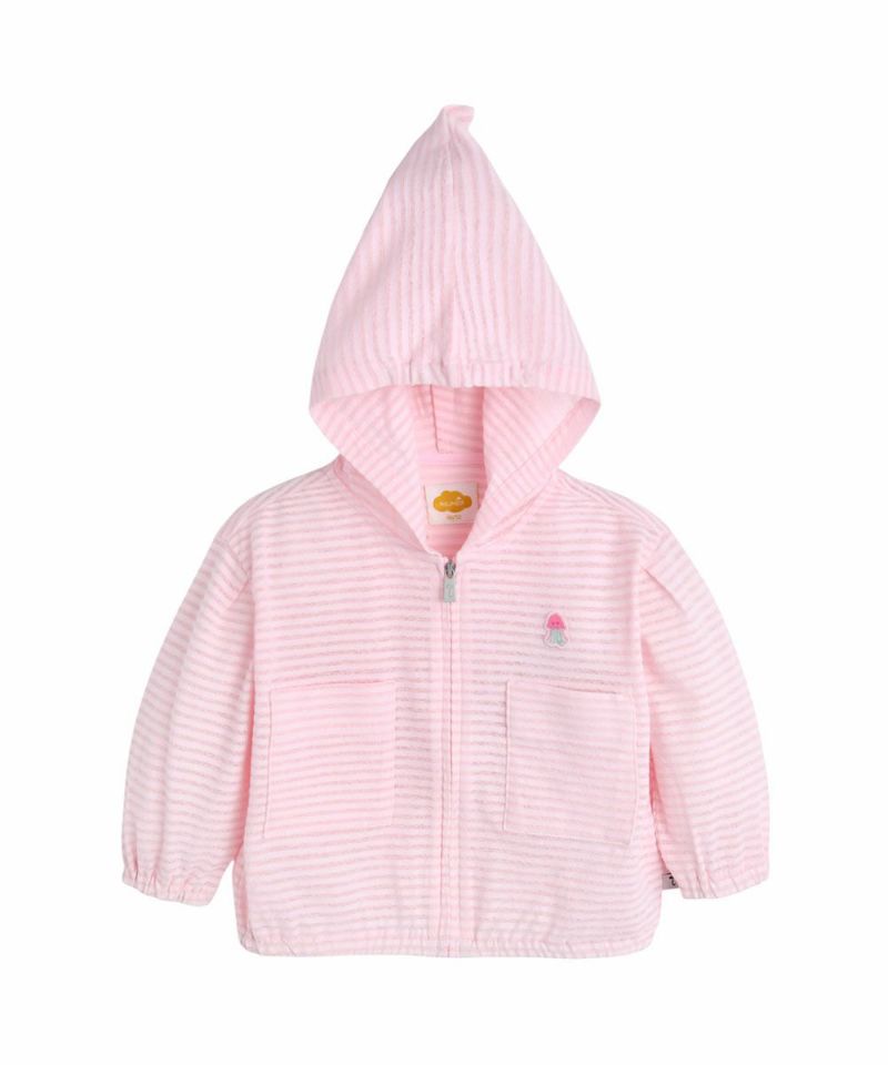 透け感のあるボーダージャンパー。クラゲのワッペンがポイント♪夏場の冷房対策や水着の上にも羽織りやすいアイテムです。