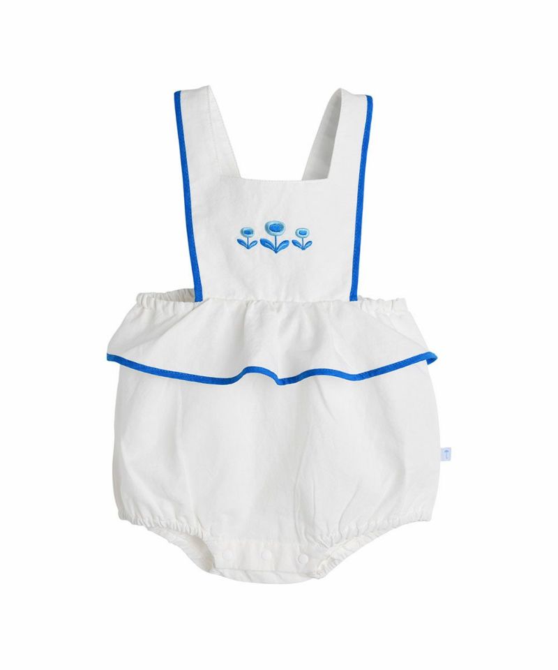 トレンディなエプロンデザインで可愛さをプラスした半袖Tシャツとカバーオールのセット。ブルーカラーの配色が爽やかなイメージを与え上品な刺繍グラフィックがポイントとなるアイテム。着心地がさらに柔らかく洗濯後も変形が少ないアイテム。ブルーミングワンピース(M252OPB15P)と姉妹ルックがおすすめです。