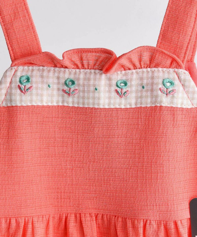 爽やかで落ち着いたカラー感が華やかに引き立つ、涼しげな冷感素材の真夏に着やすいノースリーブカバーオール。フリル装飾と配色がユニークなフラワーモチーフの刺繍をビビッドなカラーと合わせることでポイントを与え、可愛らしさをプラスしたアイテム。