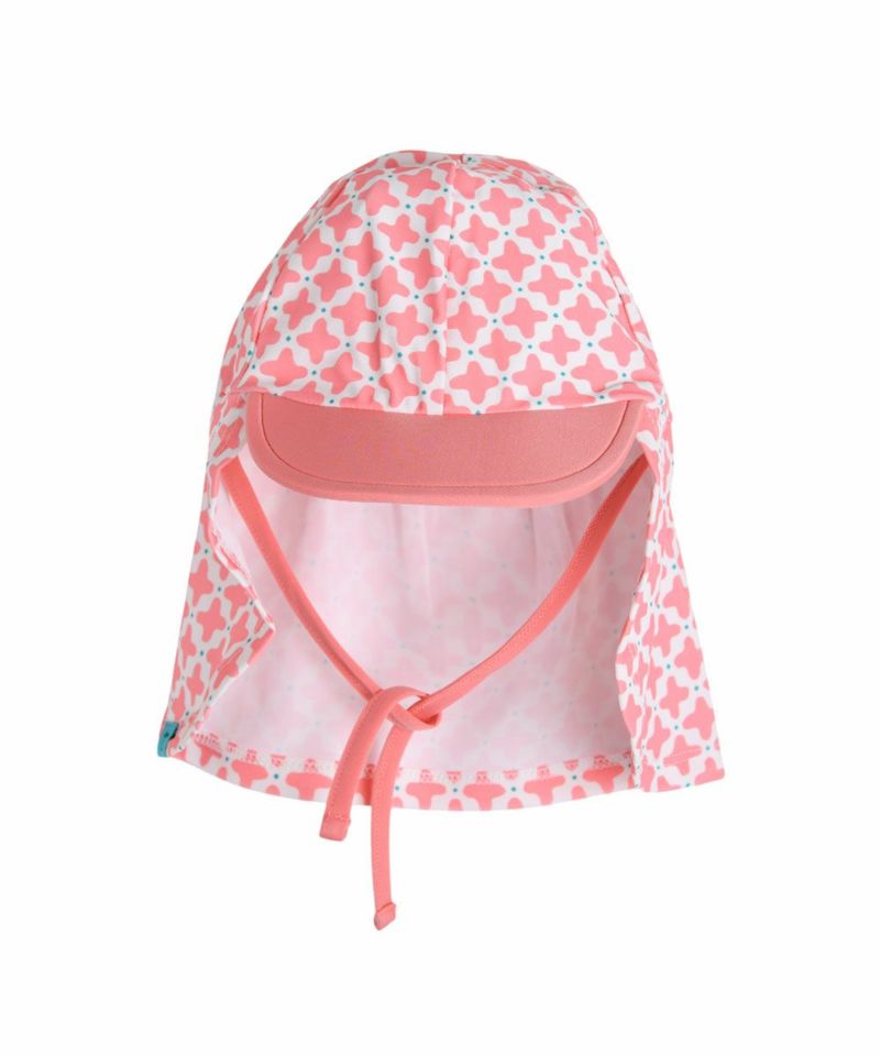 ユニークな図形グラフィックでレトロなムードのラッシュガード。強い紫外線から肌を守り、日差しを遮る帽子付きなので肌焼けしないので実用的なアイテムです。