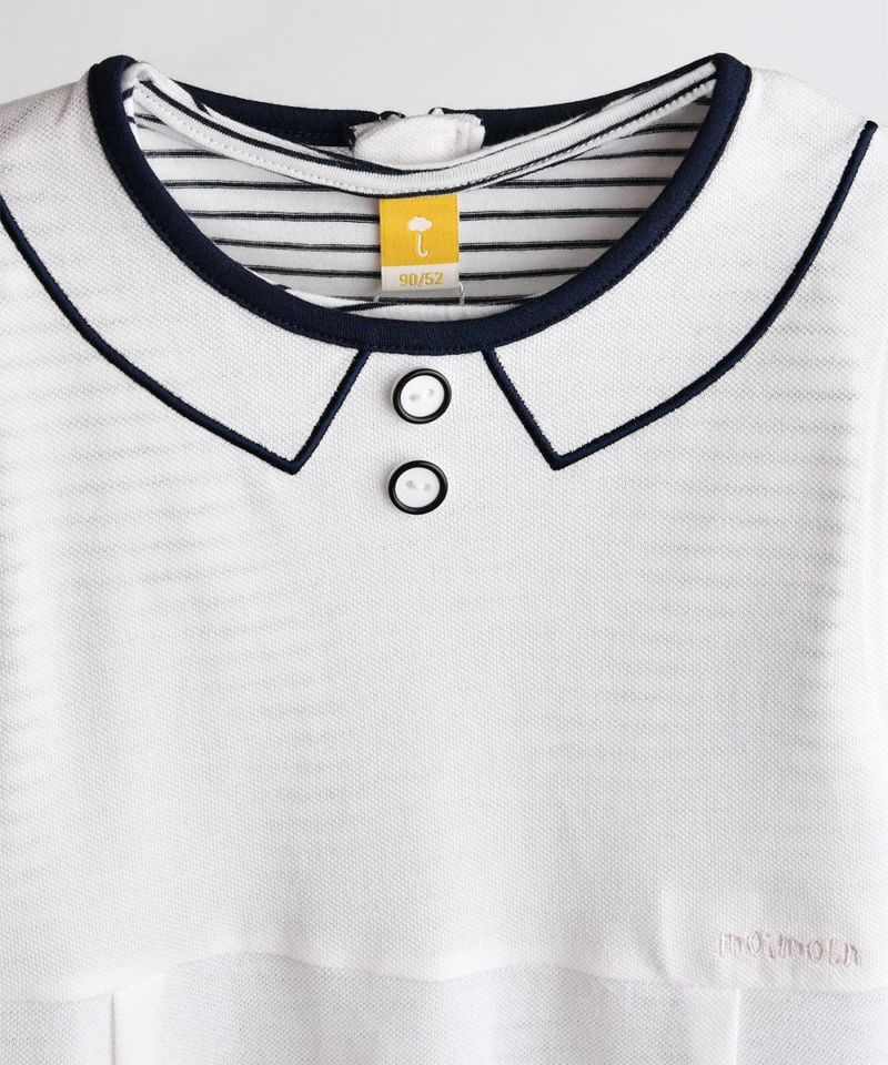 オーバーオールと7分丈Tシャツのセットアイテム。フロントの襟デザインがポイント♪爽やかな印象で夏のお出かけルックとしてもおすすめのアイテムです。