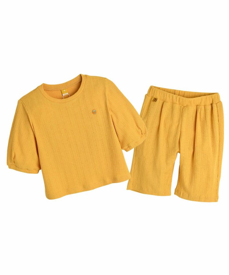 体にくっつきにくい快適な着心地を与えるセットアップ。洗濯後の乾燥が早くアイロンがけに気を使う必要のない夏シーズンの必須デイリーアイテム。快適なルーズフィットに7分丈で外部活動にもぴったりです。
