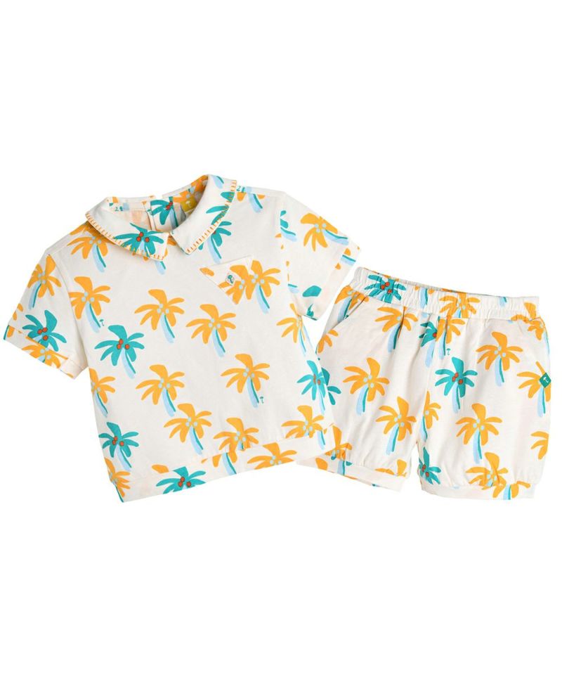 夏のバカンスルックにピッタリなココファームセットアップ。ヤシの気がポイントの夏らしい1枚です。