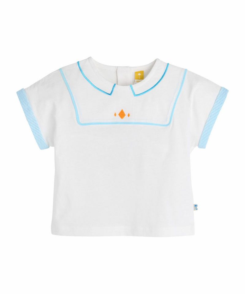 カラー配色Tシャツ。フロントの刺繍と配色がポイント♪着心地が柔らかく暑い夏も快適に過ごせる1枚です。