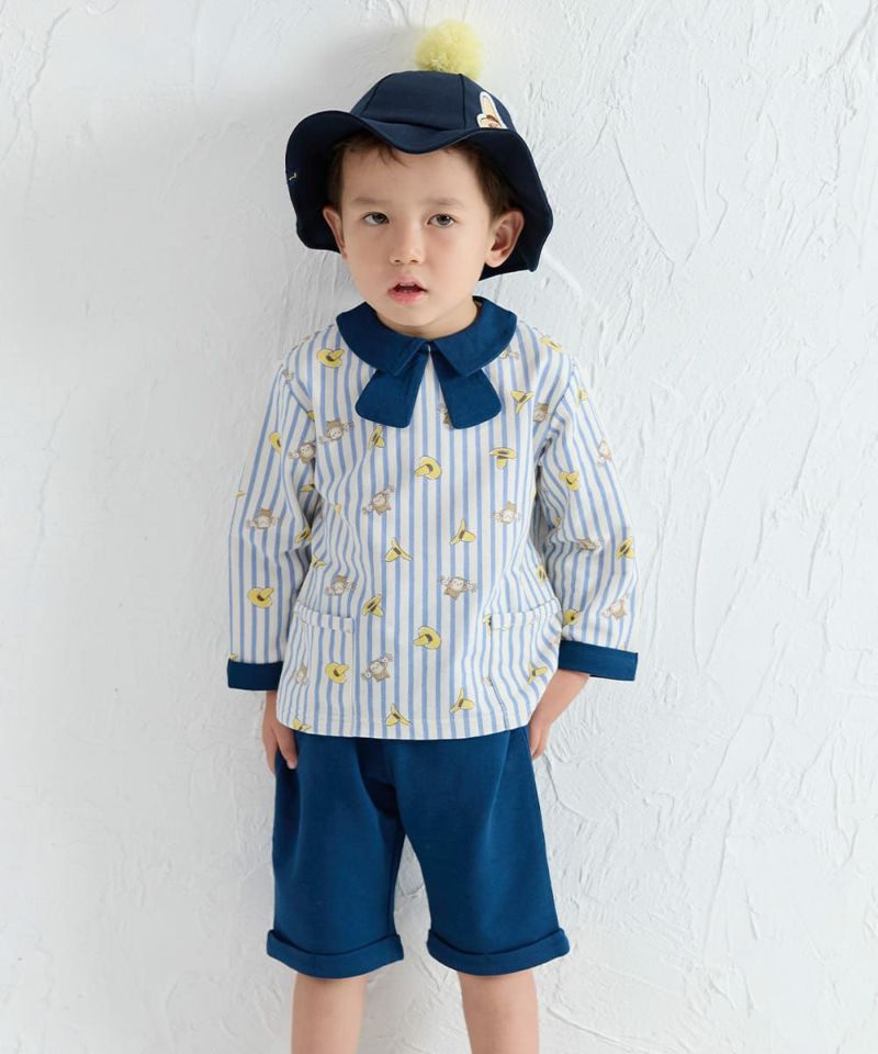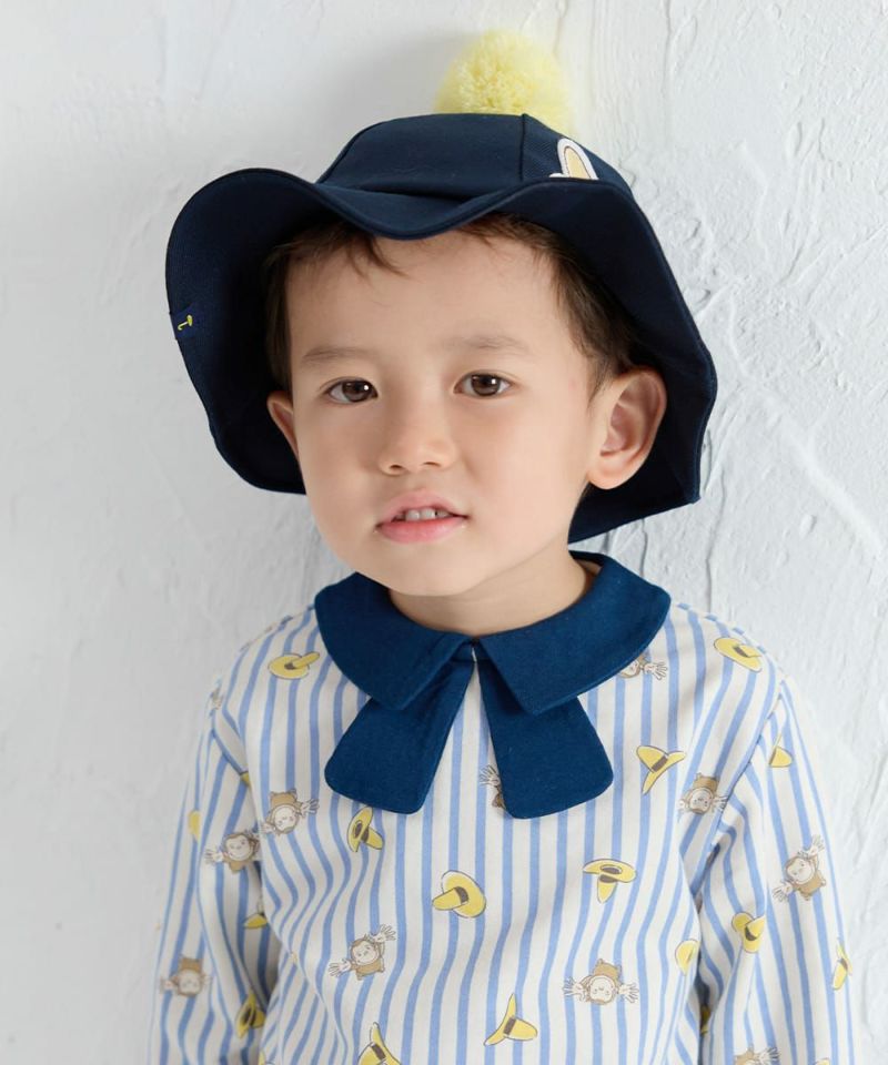 【日本限定販売】大人気絵本「おさるのジョージ」とmoimolnが初コラボ。モイモルンらしいボンボン付チューリップハットに、ジョージワッペンをあしらいました。2024年に即完売した大人気商品「オーズポンポン帽子」のデザインをアレンジしました。トップス、パンツだけでなく頭まで大好きなジョージでトータルコーディネートができます。なんにでも合わせやすいネイビー無地なので、どんなお洋服とも相性抜群です。