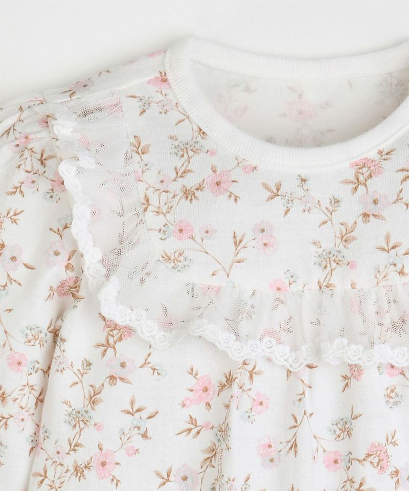 【ルームウェア】レトロフラワーレースフリル長袖トップス&パンツ