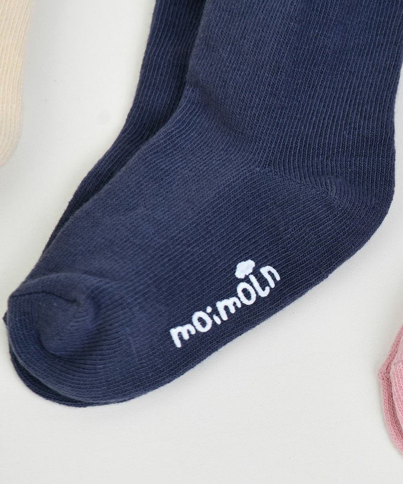 足首のフリルでラブリーさをプラスした1トーンのシンプルなミドル丈の靴下3点セット。口ゴム付近にはmoimolnロゴ、足の裏には滑り止めがついており、小さなお子様にぴったり。