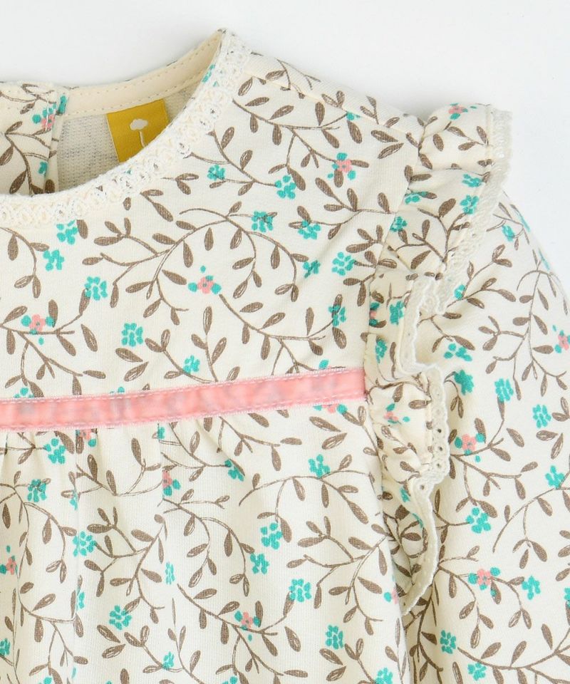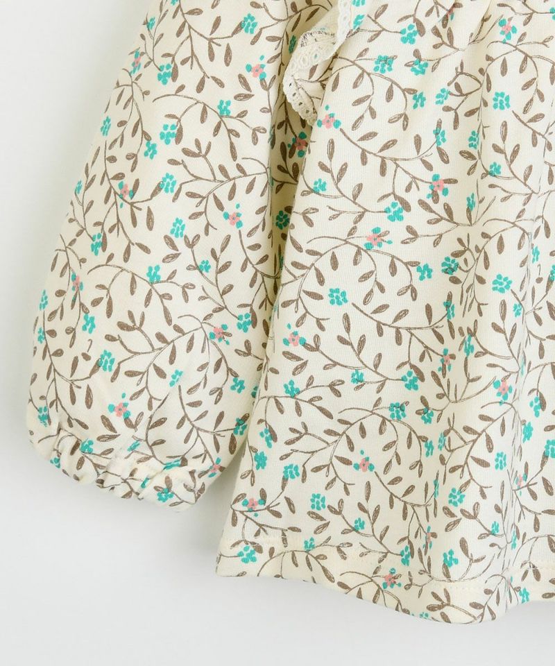 上品・やわらか・フェミニンな印象をもたせた意味のエルロイ総柄ブラウスと、ワイドロングパンツのセット。肩から腕に続くフリルでポイントを加え、胸の切り替えしにピンクカラーのベルベットで可愛らしさをプラスしたアイテムです。袖口はゴム入り、背中にはボタン付きで脱着も簡単。内側にファスナーガードを付け、肌への刺激を防止しています。※ポケット無し
