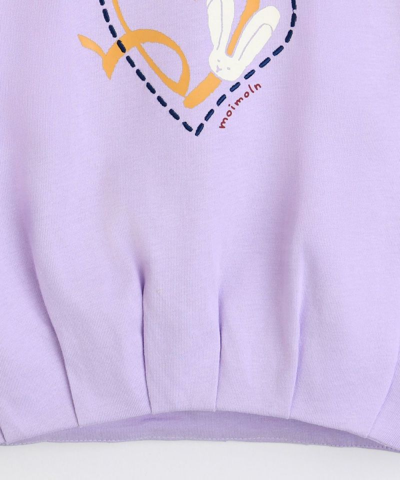 ラブリーなハート刺繍とウサギのフォレやハートのプリントを組み合わせ、ゆったりしたシルエットに仕上げた長袖トップス。裾に丸くタックをとることで、ユニークなラインを出しているアイテム。袖口はリブ付き、肩部分はスナップボタンで脱着が簡単。デニムパンツ(M253PTB08P)とのコーディネートがおすすめです。