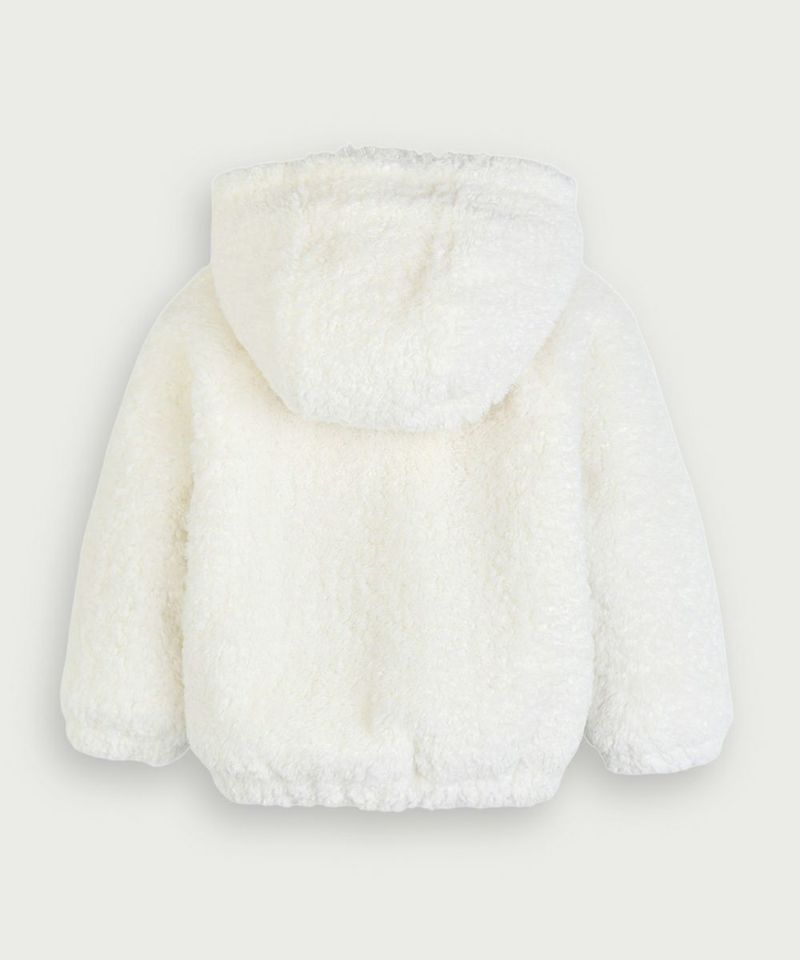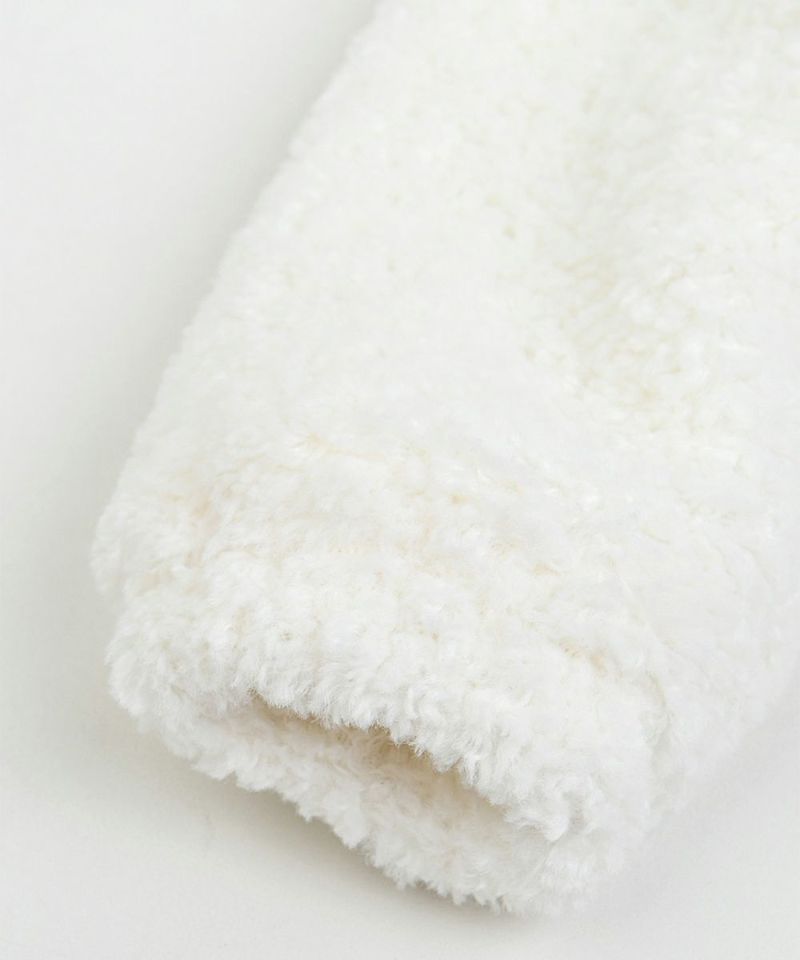 ネコのミャオ(meow)、きのこ、木のブクル刺繍のボアフリースジャケット。柔らかいボア生地に前はファスナーで脱着も簡単、ファスナーガードも付いているのでお子さまにも安心です。裏地まで柔らかいフリースで暖かく、フィット感を感じられるフード付きジャケットです。