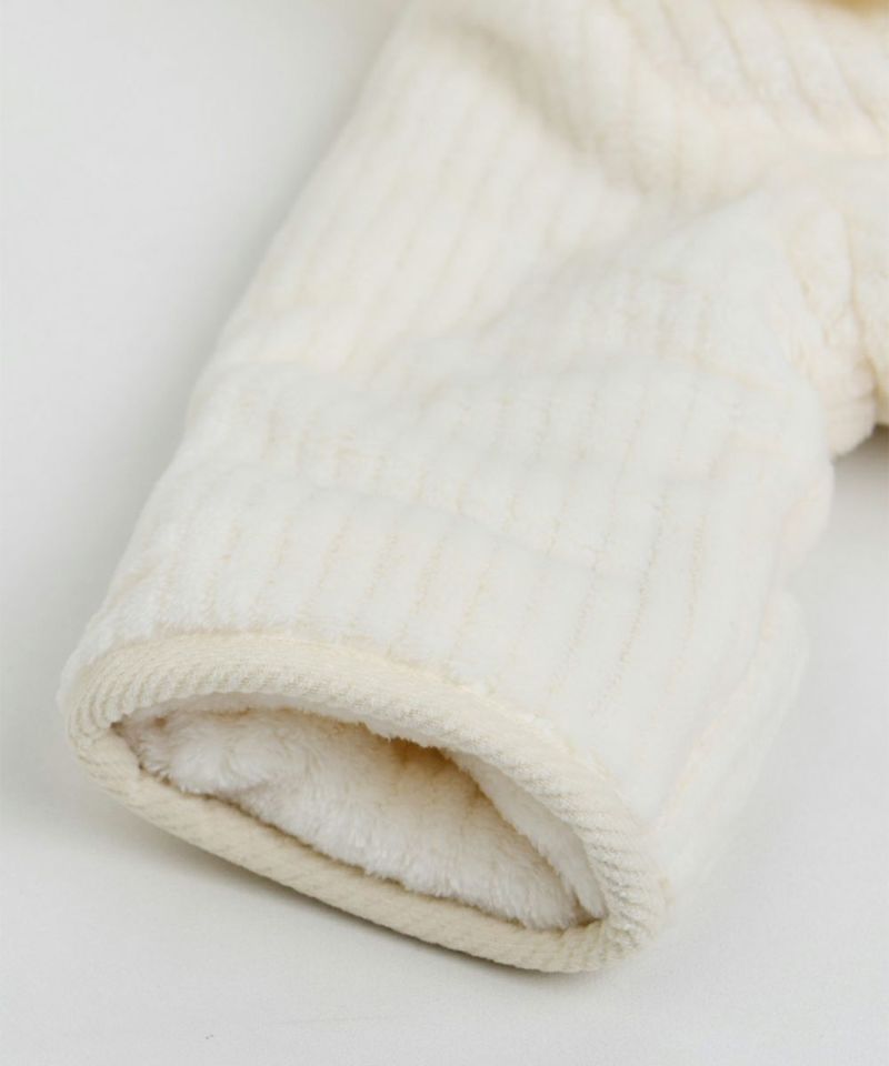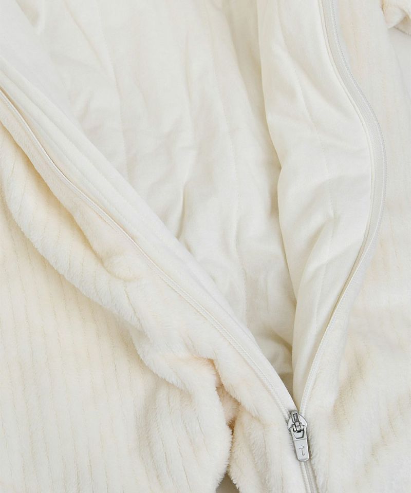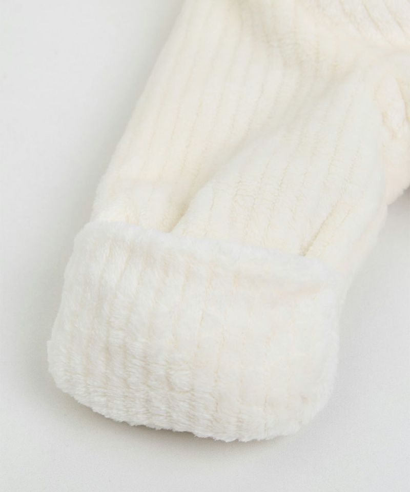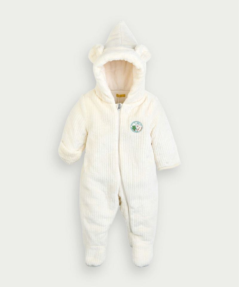 クマのデリック(derick)デザインのリブフェイクファーのパデットカバーオール。クマ耳の付いた大きなフードにヒップにはCuteなクマのお顔付き、裏地にはコツトン100%でお肌にやさしい肌触りです。袖や裾は折り返すと手や足をすっぽりと包んでくれ、寒い冬を暖かく華やかに過ごせるアイテム。フロントはファスナーで脱着が簡単、ファスナーの内側にはファスナーガードを付け、肌への刺激を防止しています。
