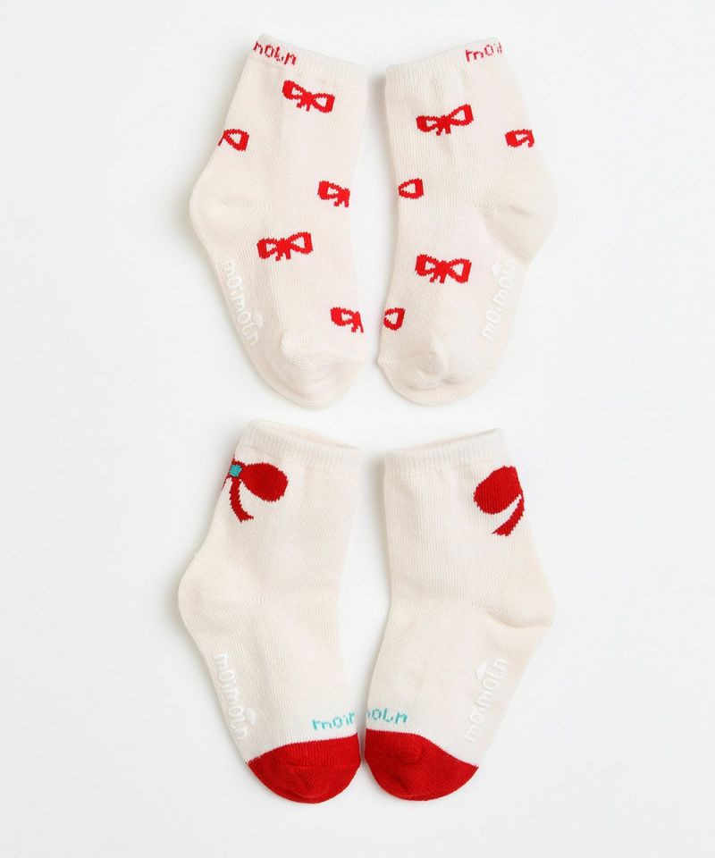 異なるデザインのお買い得な2足SETの膝下丈ソックス。デザインとしてmoimolnロゴをプラス、足の裏にはブランドロゴの滑り止めがついており、小さなお子様にぴったりです。