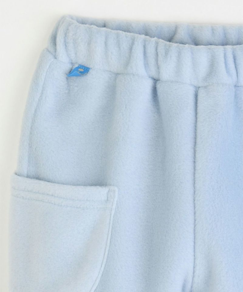 ふんわりポーラーフリース生地の長袖トップスとロングパンツのセット。クマのデリック(derick)が胸元に、首元はモックんネック仕様、カンガルーポケットがかわいいです。ほどよく厚みのある生地なので冬の登園ルックにもぴったり。