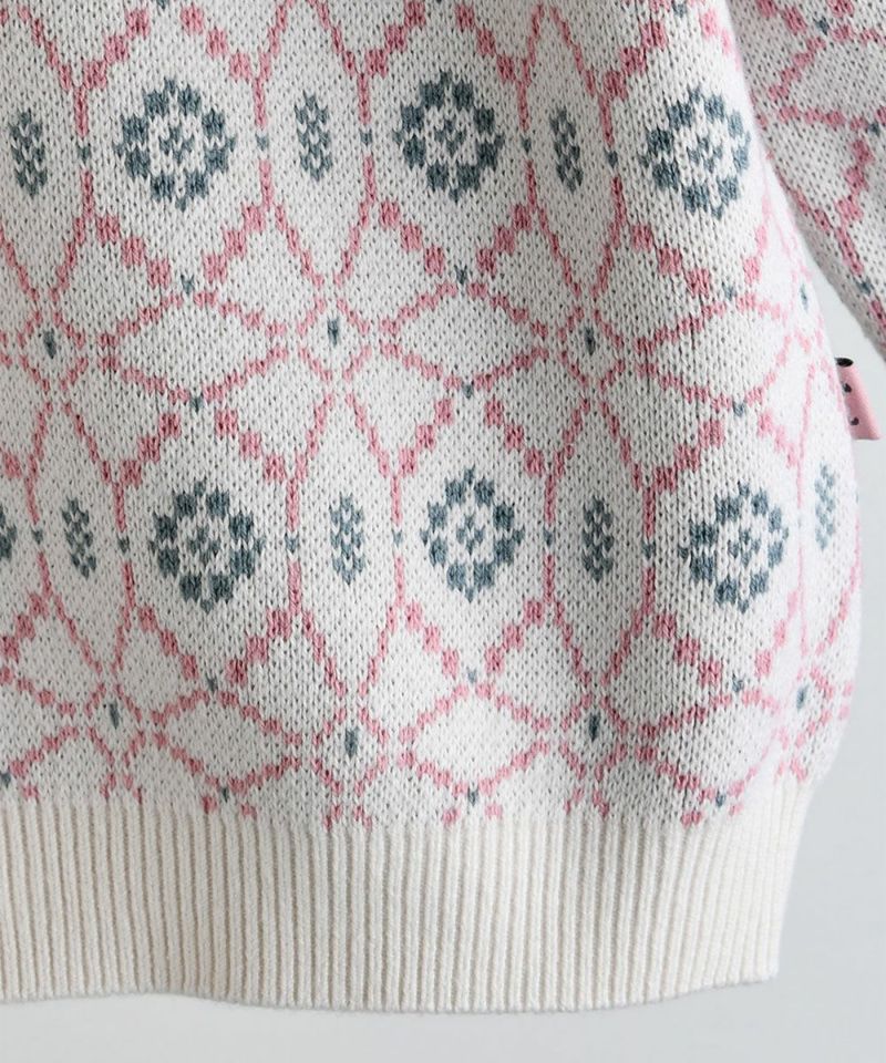 【セットアップ】ノルディックピンク長袖ニットトップス&ショートパンツ