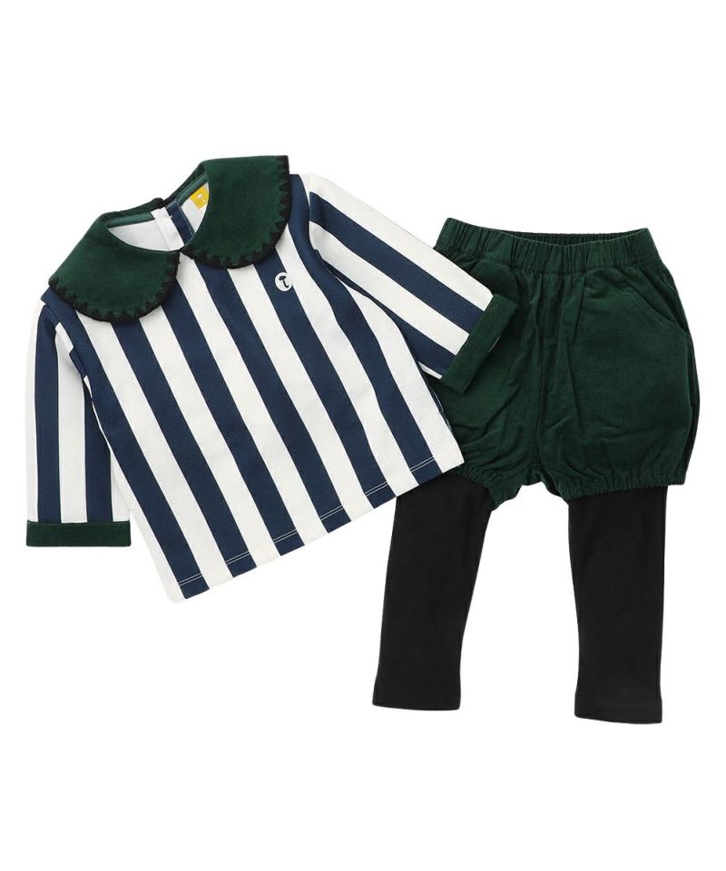 凹凸で表現した組織柄が特徴的な膨れジャカード素材に、太ピッチのストライプ柄をプリントしました。存在感抜群の異素材仕立ての配色衿が特徴のボックスシルエットトップス。異素材つくられた大き目のショールカラー個性的です。袖口にもアクセントで配色をいれました。冬に嬉しいコーデュロイパンツとレギンスがフェイクレイヤードされたボトムがセットになったコーディネート要らずの便利アイテム。日常使いに便利なご家庭でのお洗濯が可能なイージーケア商品です。