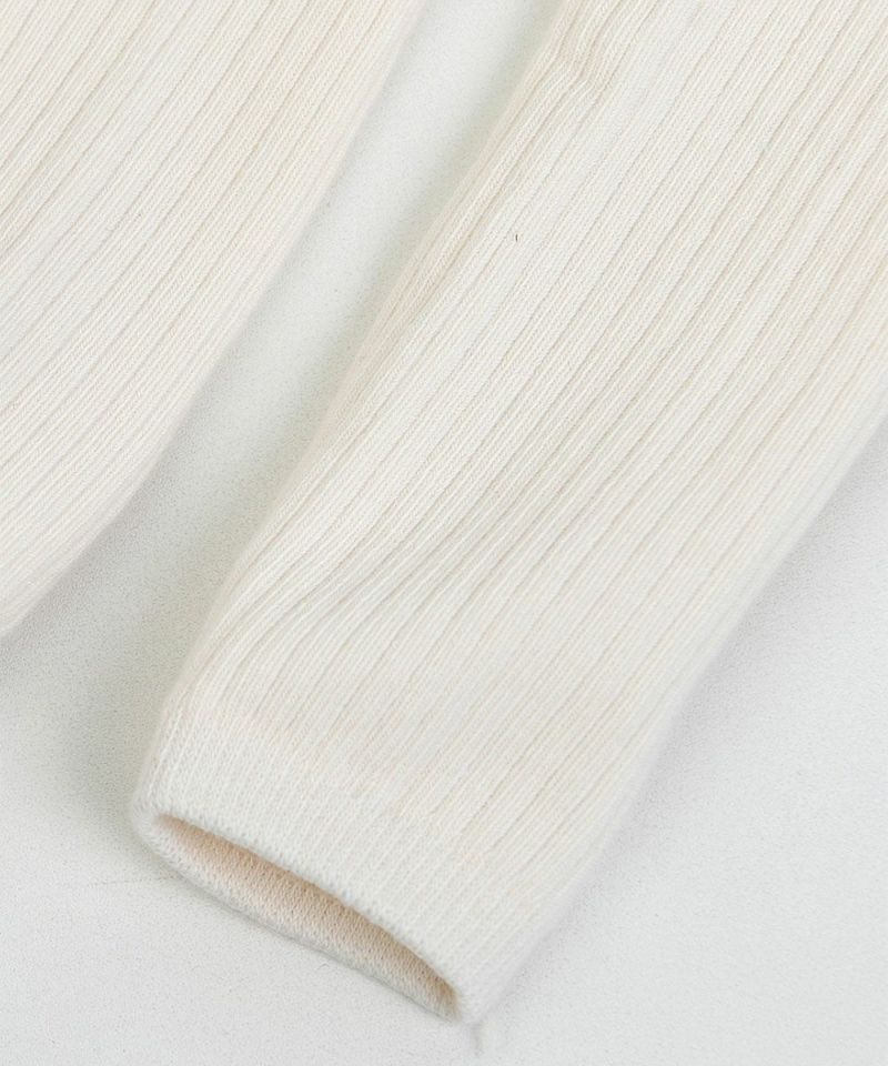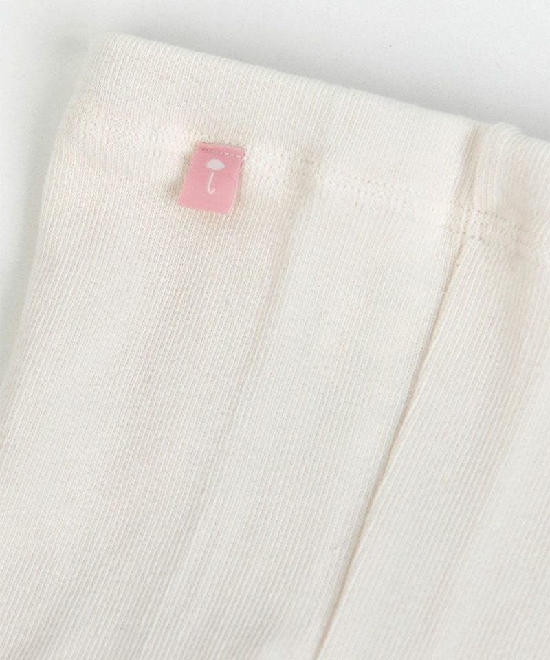 使い勝手の良いタイツのようなフィット感のあるレギンスとリボンモチーフがかわいいひざ下靴下のセット。靴下にはさりげないブランドロゴをあしらい、更に足の裏にはmoimolnロゴの滑り止めがついており、小さなお子様にぴったり。オムツの上からでもすっきり見えるようなヒップ部分のラインを意識したデザインでワンピースなどとのコーデもおすすめです。