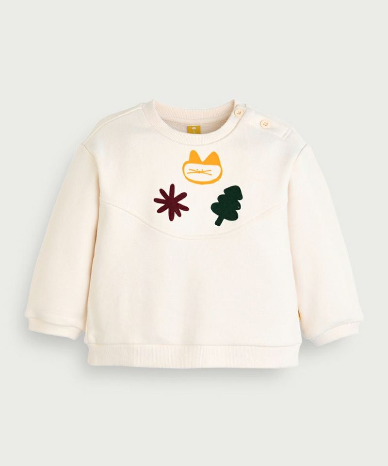 ネコのミャオ(meow)のパッチがかわいい、裏毛素材の長袖トップス。ネコと森の木や花のプリントがポイントで、裏毛なので保温・保湿性が高く、吸水性もあります。様々なボトムスとコーディネートの活用度が高く、デイリーに活用しやすい長袖トップスです。