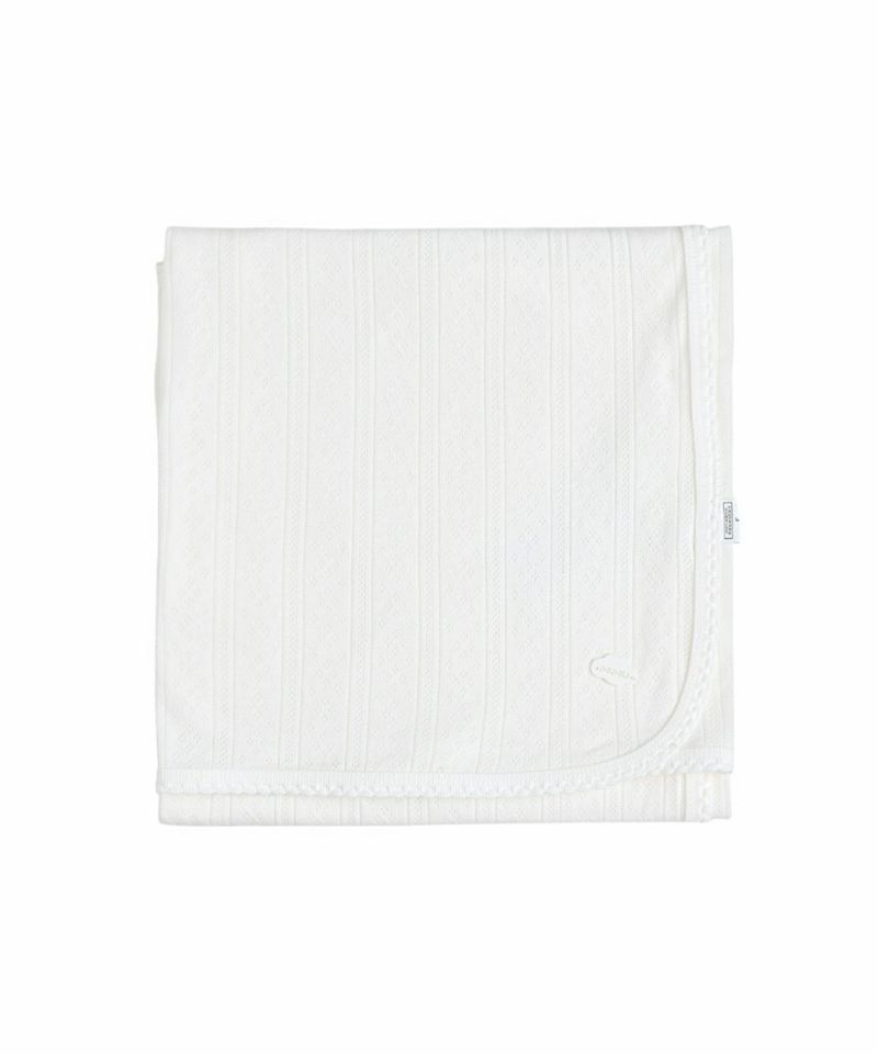 レースのような素材のおくるみ。高級感があり出産のお祝いとしても喜ばれるアイテムです。
