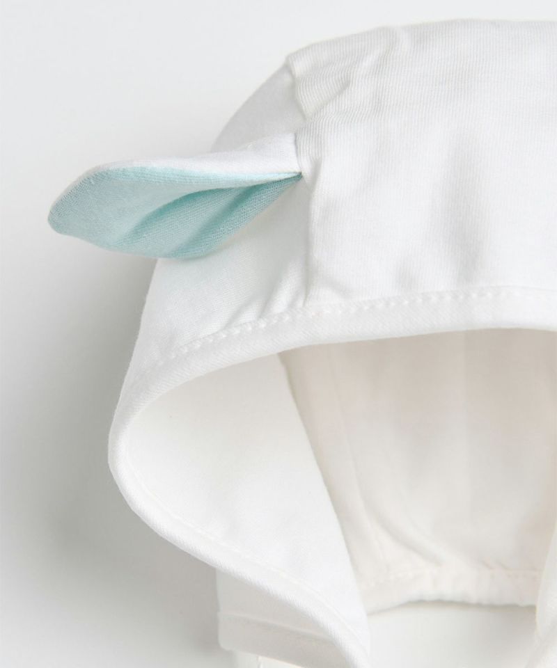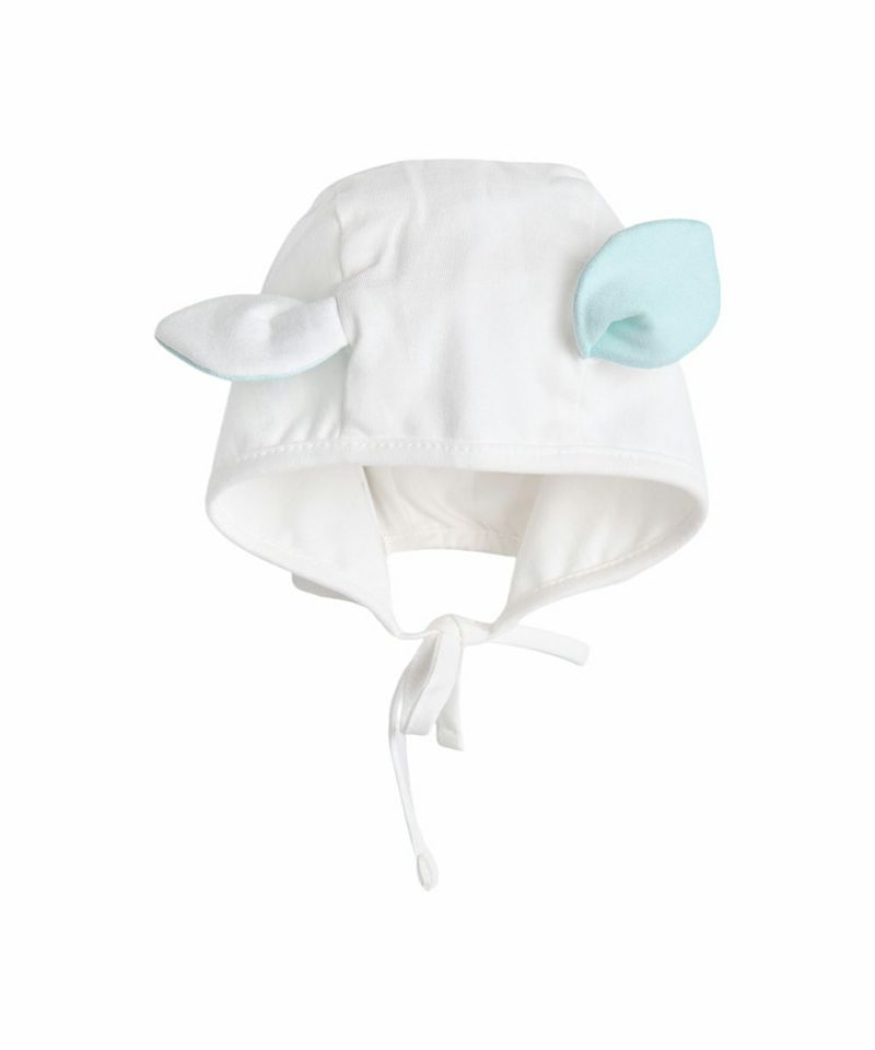 耳のついた帽子が登場。思わずかぶせたくなる可愛さ♪普段使いから、ハーフバースデーや1歳の記念撮影にもピッタリ♪M2552JW27P(ピッコロ三角スタイ)とセットギフトとしてもおすすめです。