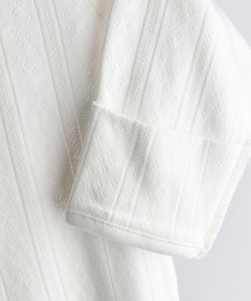 レースのような素材の肌着。産まれたばかりの赤ちゃんにピッタリなアイテム♪出産の祝いにおすすめです。