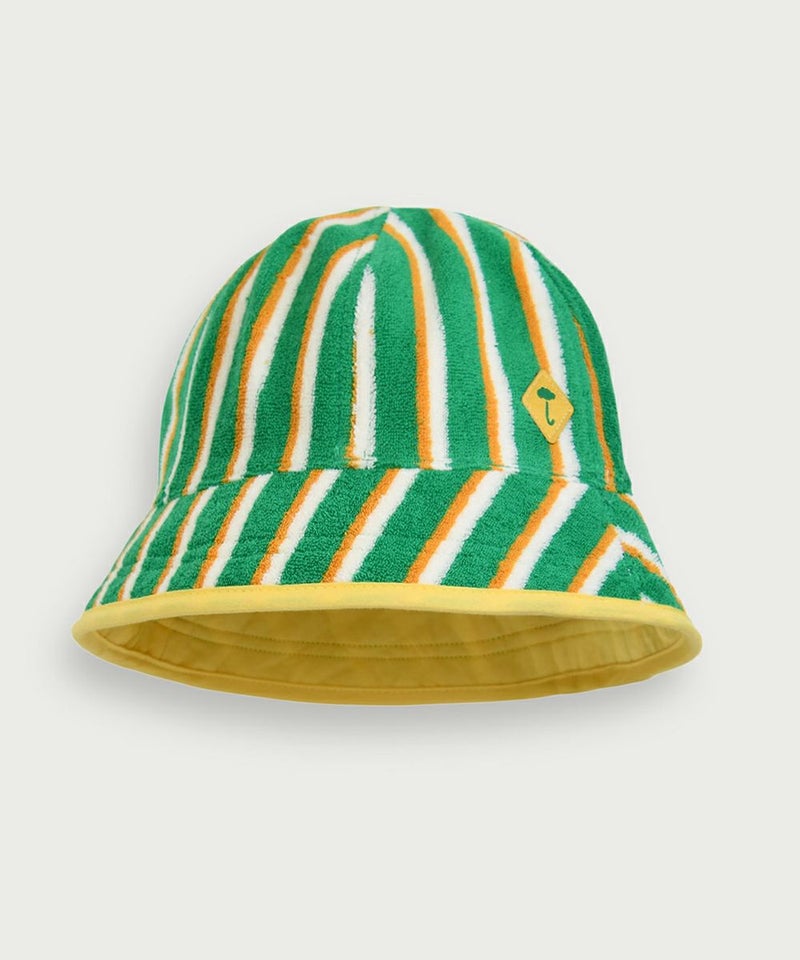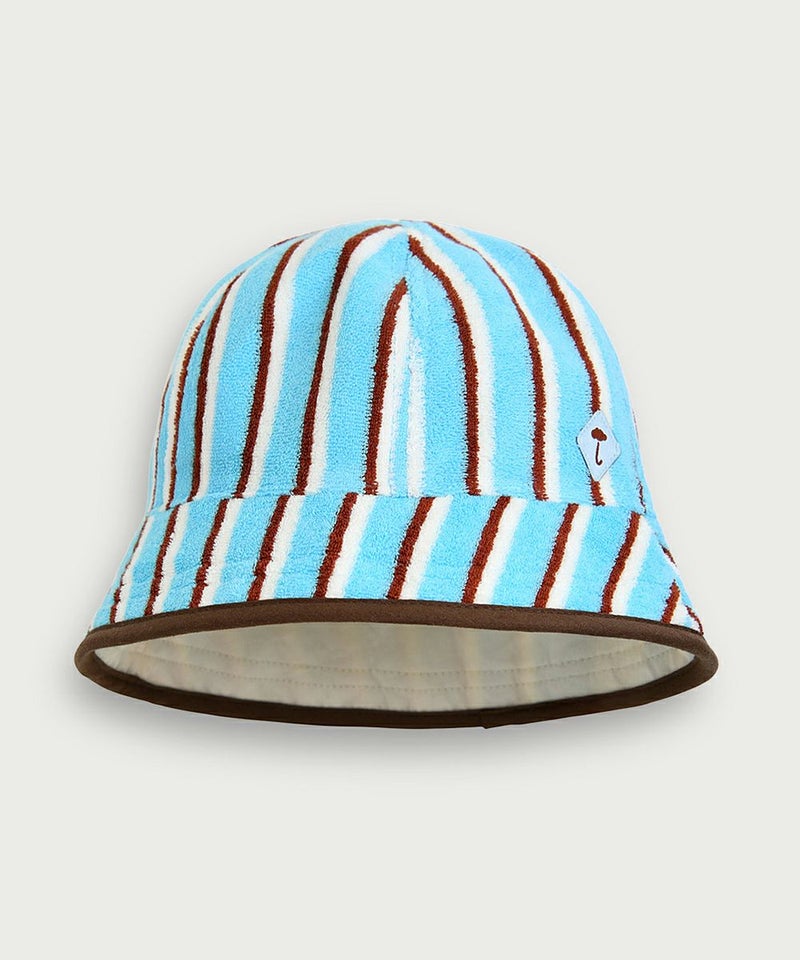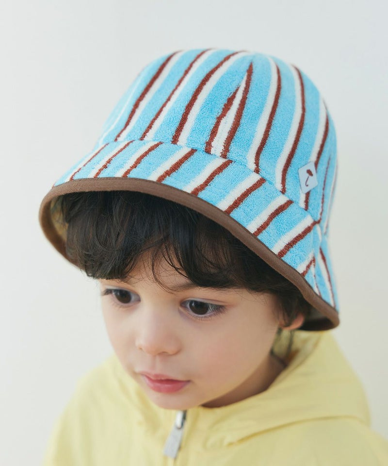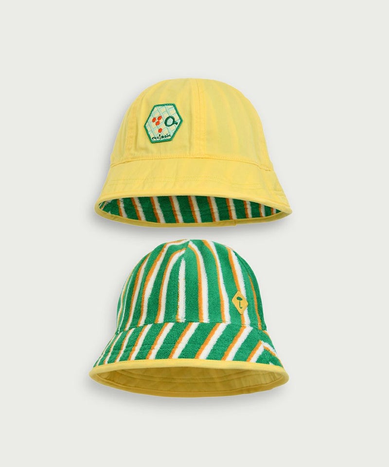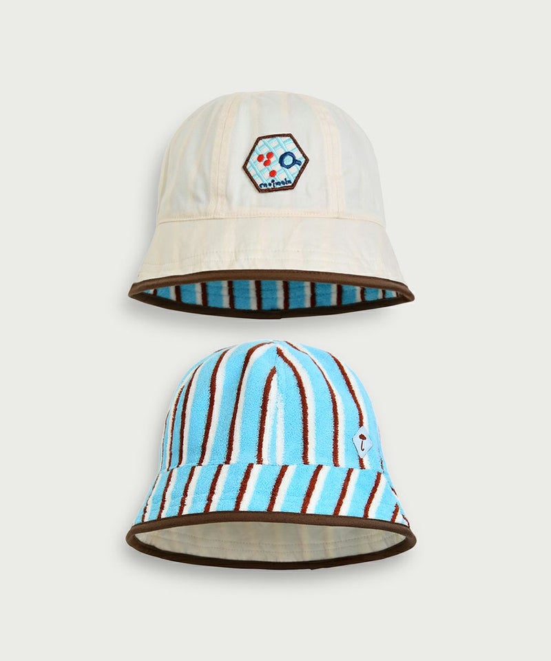 ストライプ柄と無地のコンビネーションがうれしいリバーシブルバケットハット。