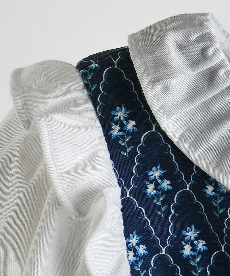 首元や胸元、袖口のフリルがガーリーな印象に。