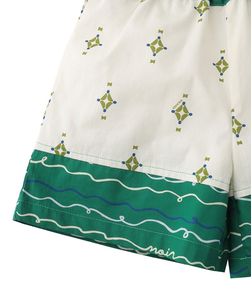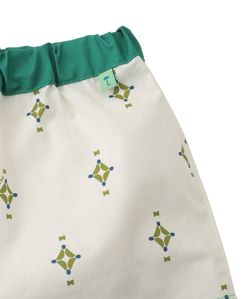 ウエストの配色ラインでタックインしてもかわいいデザインで、同柄のトップス(M262TSB72P)と合わせてセットアップとしてもおすすめです。