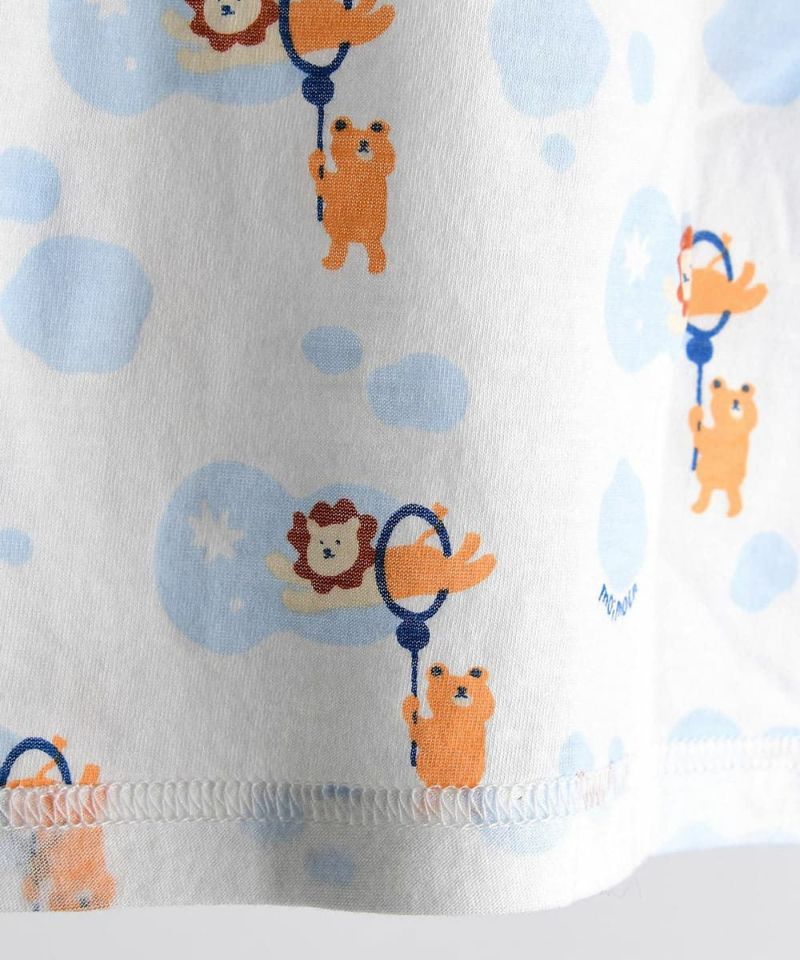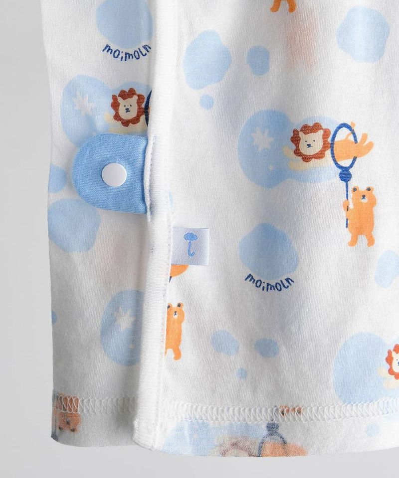 肌に優しいモダールコットンの短肌着。サーカスを楽しんでいるようなクマとライオンのモチーフ柄がポイントのアイテム♪これから出産を控えている方にもおすすめです。