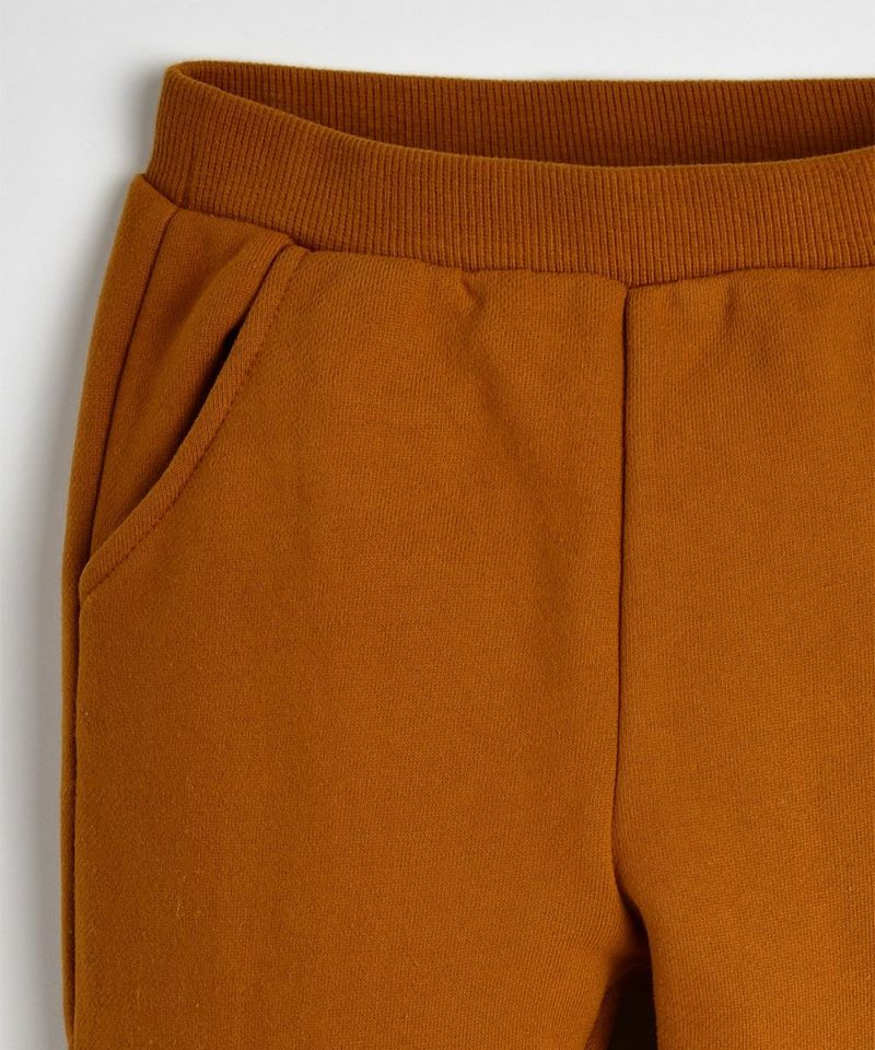 この茶色の組み合わせが意外と持っているものと合わせやすく、おしゃれに見える。 ワンポイントのポケットと刺繍もかわいいです。 足首のリブで動きやすそうだし、暖かそう。