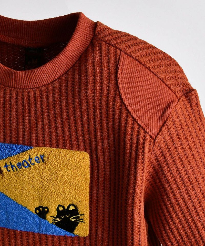 カラーポイントになるワッフル起毛素材のスウェットTシャツ。シーズングラフィックムードが引き立つ刺繍がポイントで、ソフトなタッチ感で楽に着られ、トレンディに演出できるアイテムです。