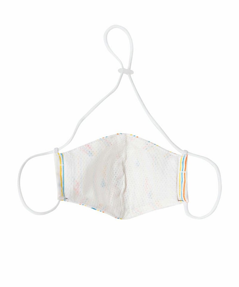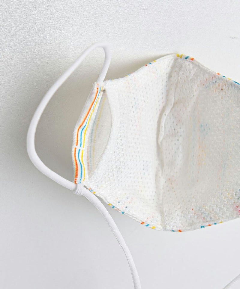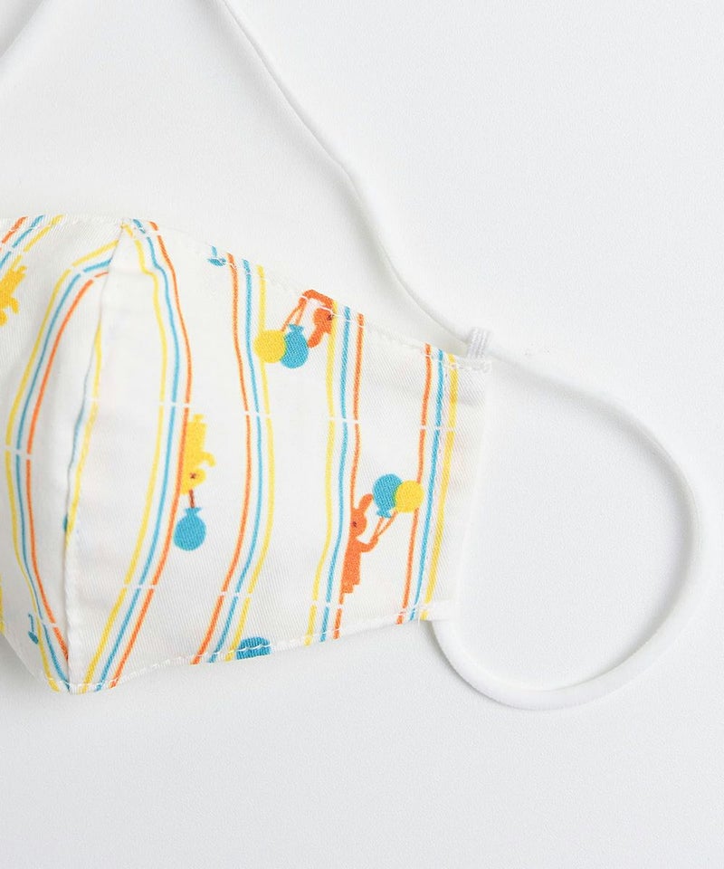 フィルター交換型立体マスク。バルーンベアープリントがポイント♪表地と裏地の間にフィルターを入れられるように切り込みが入っていて、マスクの紐にストッパーが付いているので、顔に合わせてサイズ調整できる実用的なアイテム。小さなお子様にも実用的で、裏面に抗菌加工をした衛生的で安心してご使用いただけます。