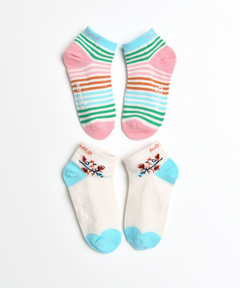 新しいモチーフとミントカラーの華やかな組み合わせとストライプパターンで構成されたソックス2点セットです。