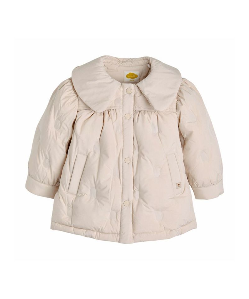 ウサギモチーフのキルティングがユニークな軽量ロングジャンパー。襟とパフ袖で女の子らしさを追求したデザインで、様々なワンピース、セットアップとマルチコーディネートが楽しめるアイテムです。